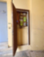 Nous avons travaillé à la restauration de cet ensemble menuisé classé bâtiment de France. Il est situé dans la cour d'un hôtel particulier Toulousain rue Pharaon. Nous avons procédé à la dépose complète de la cloison, que nous avons remplacé par une cloison provisoire en OSB et ossature en pin. En atelier, nous avons d'abord procédé à un décapage de la peinture d'origine. Nous avons ensuite réalisé des greffes sur les parties abîmés en sipo. De nombreux croisillons ont été remplacés, avec reproduction des profils de moulures. Nous avons aussi revu la structure des portes en consolidant les assemblages. Ensuite, nous avons soigneusement poncé les portes puis les avons peintes avec une peinture microporeuse d'extérieur, à la teinte exigée par les Bâtiments de France.